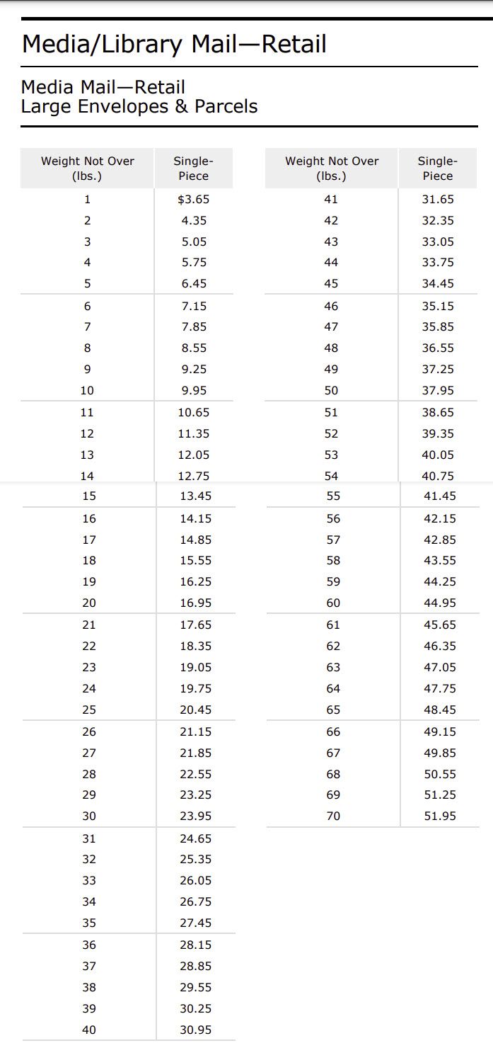 New USPS pricing is now in effect. Don't miss the Media Mail increase as well!