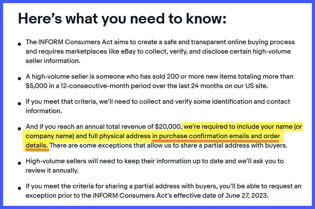 If you're not familiar with the INFORM act - it's the reason you've likely recently been asked to submit a copy of your government ID to marketplaces like eBay, Etsy, Mercari and others.