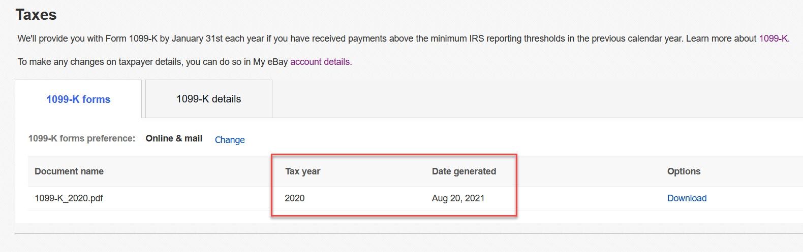 Even more concerning, eBay is indicating 1099-K forms for 2020 were issued in August of 2021 - yikes!